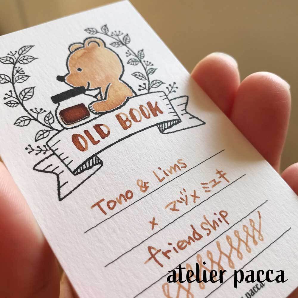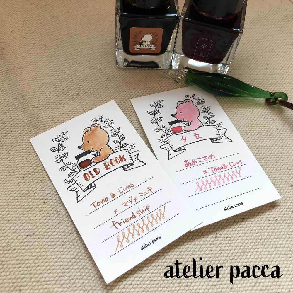 ボトルを抱えるクマさんのイラストをあしらった色見本カードです。