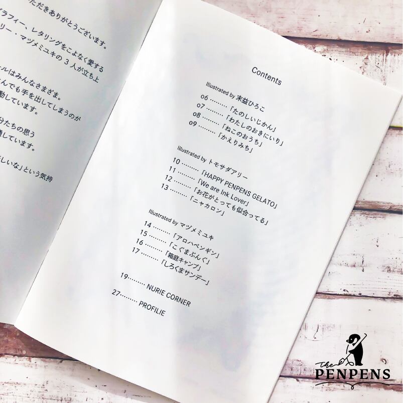 PENPENSメンバー・末益ひろこ、トモサダアリー、マヅメミユキの3人によるイラスト集です。